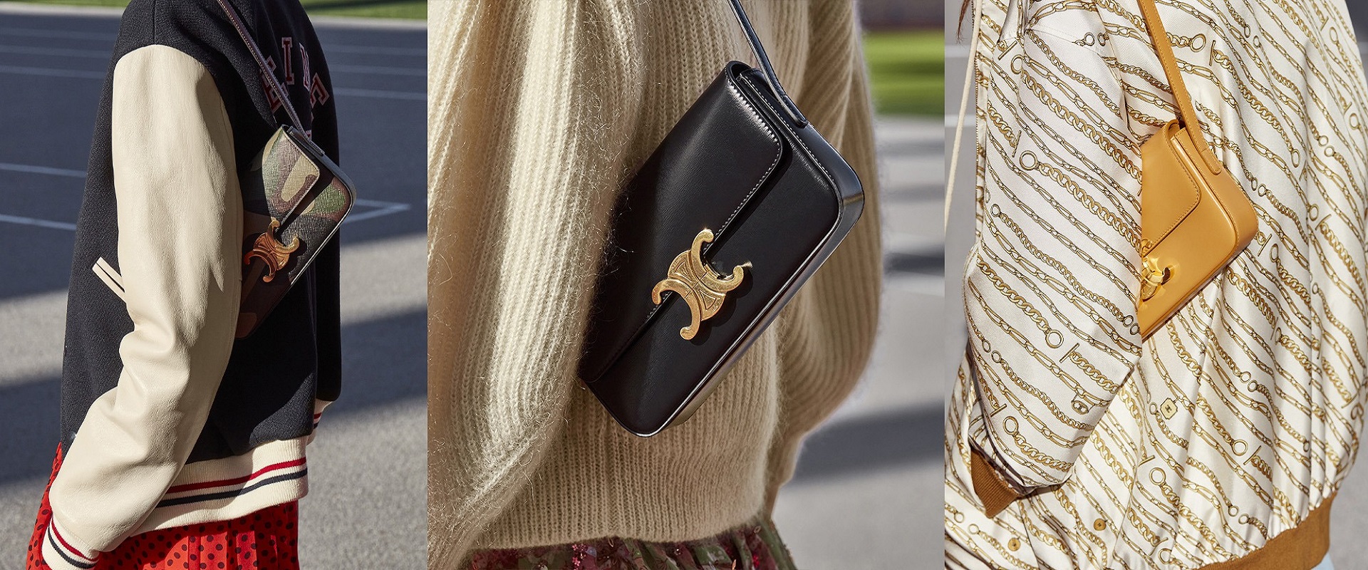 mulheres acessórios CELINE bolsa triomphe adolescente em couro de bezerro brilhante preto T204R1